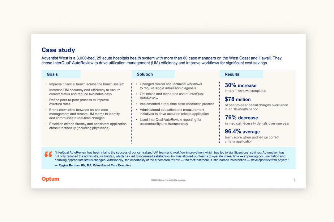 Discover how Adventist West uses InterQual® AutoReview to improve UM efficiency, saving costs.