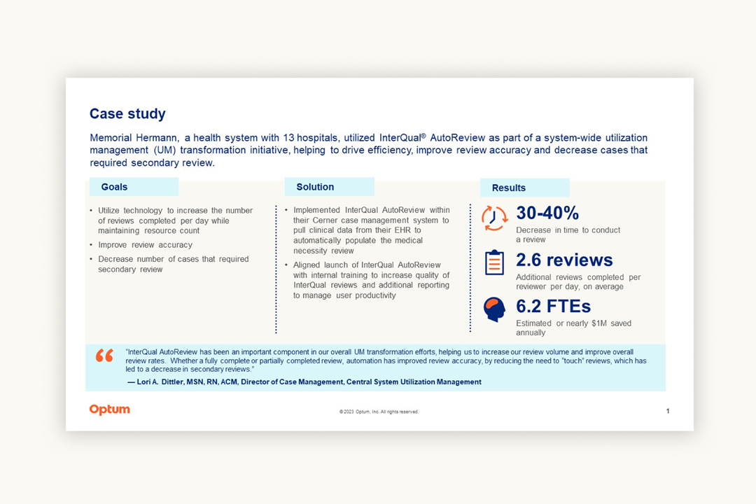 Memorial Herman boosts UM with InterQual® AutoReview, enhancing accuracy and efficiency.